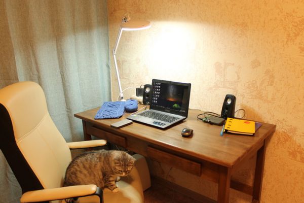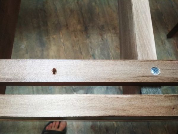 Прикрутив столешницу, я был в седьмой раз приятно удивлен тем, что конструкция действительно работает. Подкладывая под любую из ножек небольшие дощечки, я наблюдал что все остальные ножки надежно стоят на полу.