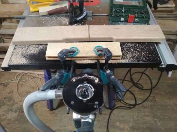 Собирать каркас я решил на классическое соединение шип-паз. Пазы делал ручным фрезером. Конечно не обошлось без косяков, но раза с пятого я приноровился и даже сумел не испортить безнадежно ни одной детали.