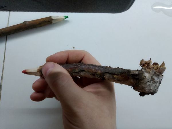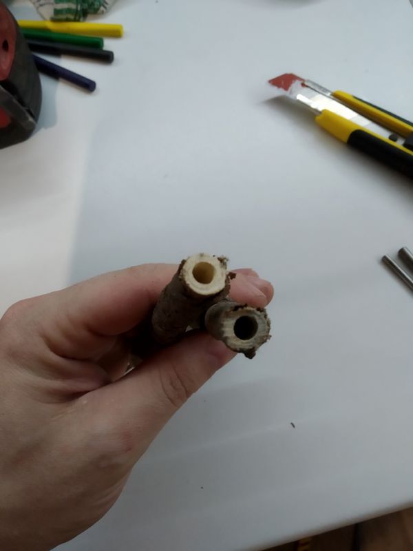 Палочки пилим и сверлим глухое отверстие в торце 4-6мм (исходя из толщины веточки):