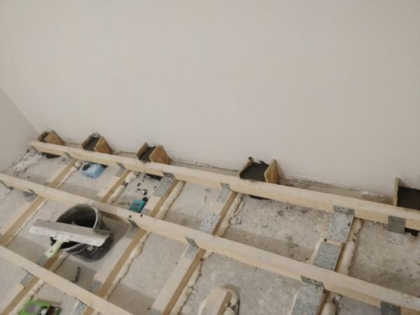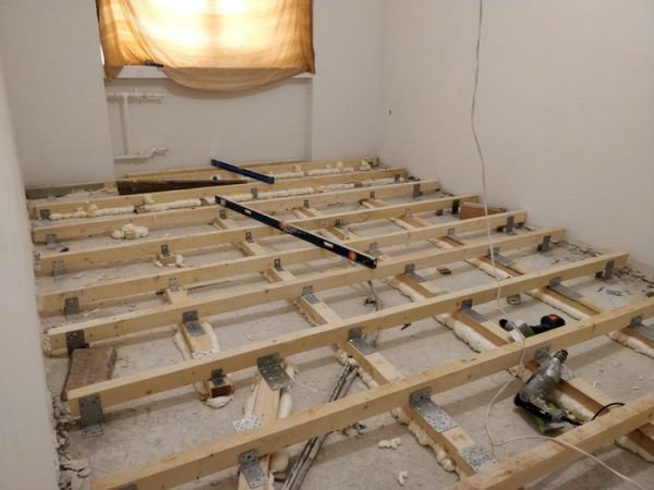 Стал искать в интернете, что можно сделать с полом. Стяжку сразу отмел - все же много придется заливать, не уверен, что 5 см бетона это выдержит + сохнуть это будет месяц, к тому же, там проводка соседа ( при повреждении которой ответственность на мне).