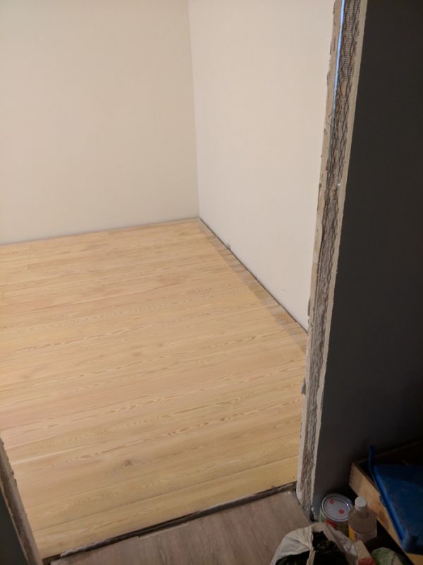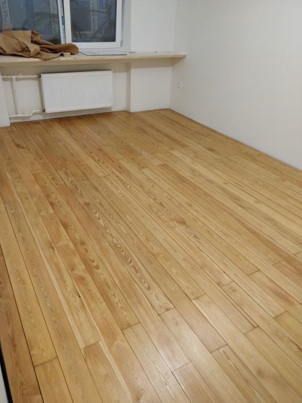 После этого перешел ремонт в другую часть квартиры. Досочки рассохлись (хотя продавец обещал, что доска сухая). Появился щели. Супруга сказала - оставляй как есть.