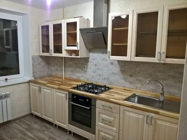 Пошерстил интернеты, погулял по салонам. Выяснилось что самая ущербная модульная кухня 2,4 метра мне обойдётся примерно в 40 тыр. Платить за клееный ламинированный дспуж очень не хотелось, при том что выглядит это чудо не сильно презентабельнее старой кухонки, коих миллионы по всей России. За дерево же просили примерно 100 за метр. Ладно хоть уже берёза. Но не по карману совсем. Было решено пилить самому. Руки не кривые, но подобными вещами никогда не занимался. Начал с изучения ютуба, смотрел работы и профи и новичков. Главное не бояться.