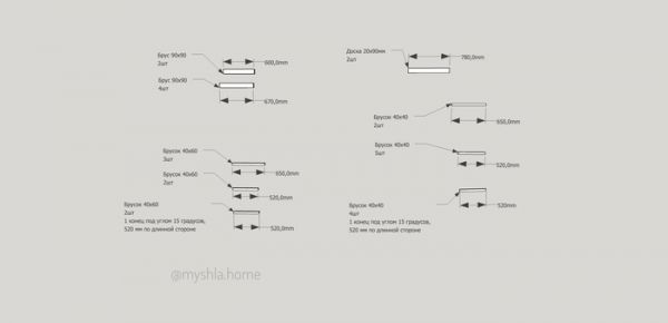 Доска 90*20 - 2 м (я купила доску с шириной 96мм и рубанком убрала лишнее)