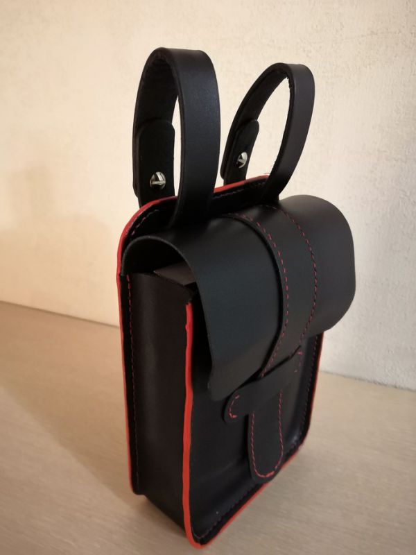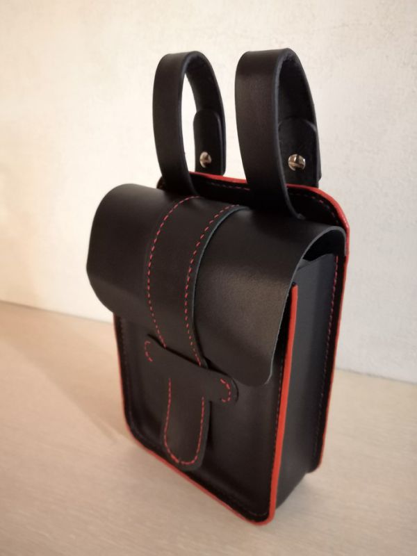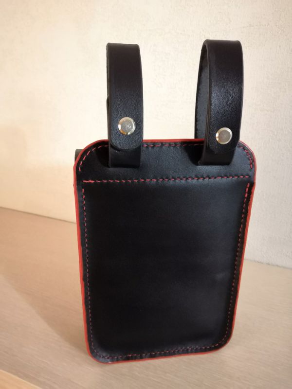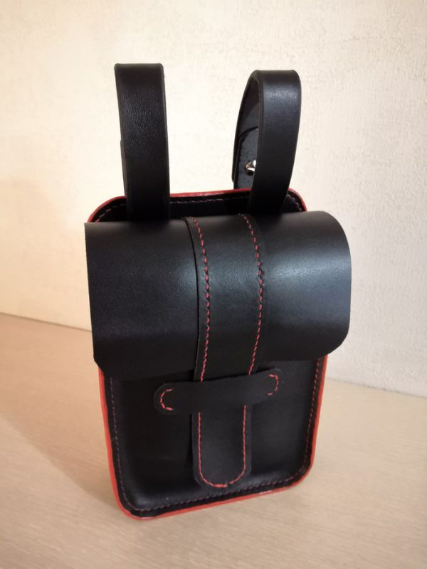 Лямочки, крепления к поясу, сделал из ременной кожи. Хотел из той же кожи, что и сама сумка, но показались мягковаты. По выкройке лямочки изготавливаются с кобурной кнопкой. Я решил, что лучше будет исполнение на ременных винтах.