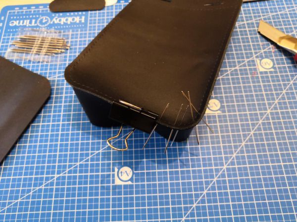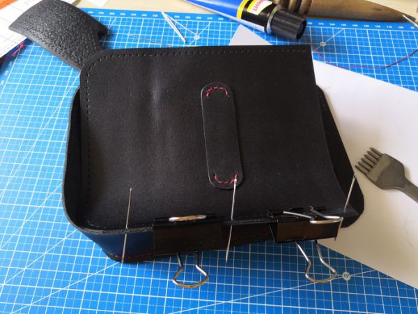 Далее начинаем сборку. Сначала детали склеиваем. Главное, чтобы отверстия совпадали и не оказалось перекоса. Когда клей схватывается можно начинать прошивать.