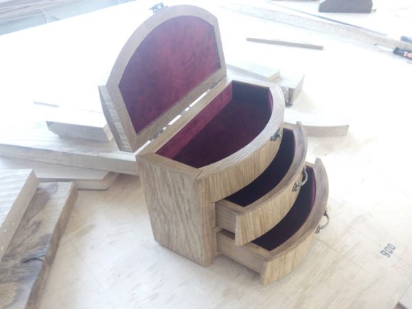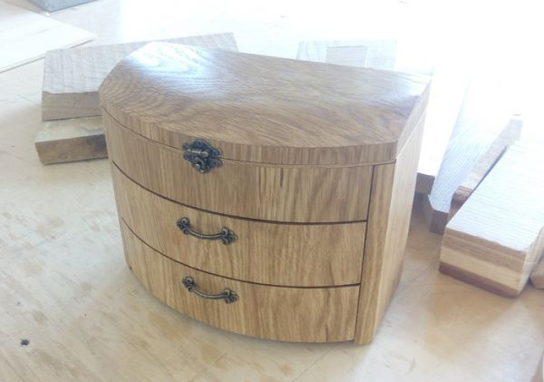 Изначально была идея сделать из дубового пня, но пень оказался весь в трещинах, оставлю его на следующий раз. Пришлось взять обрезок дубовой доски. По задумке комодик-шкатулка, снизу 2 ящичка и сверху шкатулка.