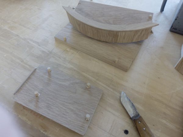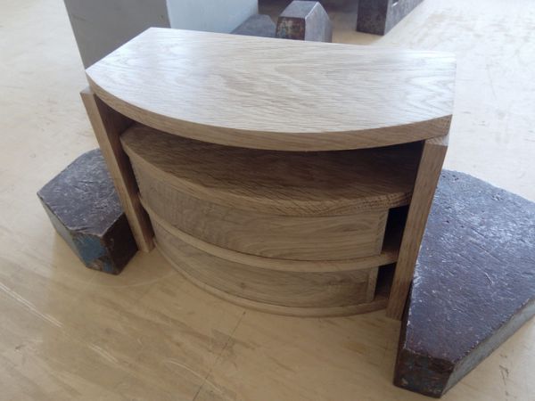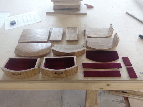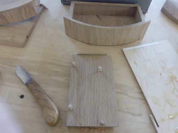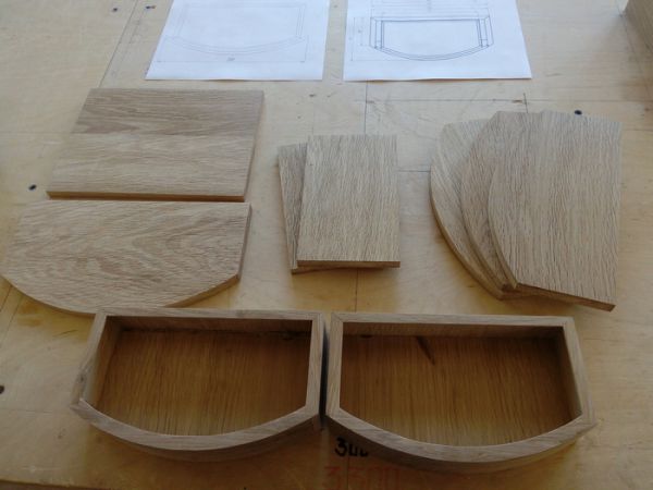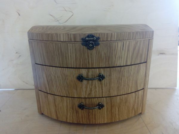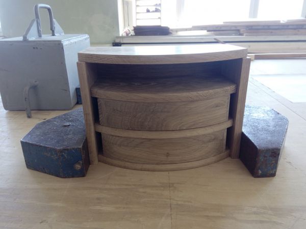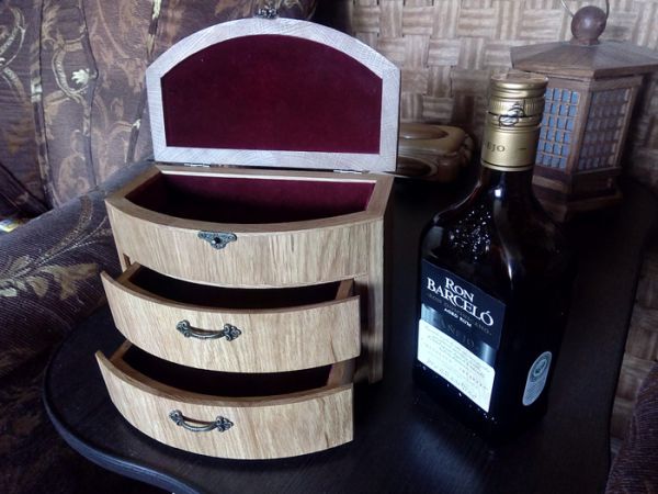 В первую очередь сделал ящики. Вокруг готовых ящиков сооружать шкатулку легче, чем потом ящики под шкатулку дорабатывать. Почему? объясню ниже. Выгибать доски мне нечем, поэтому, что бы изготовить переднюю панель, пошел другим путем.