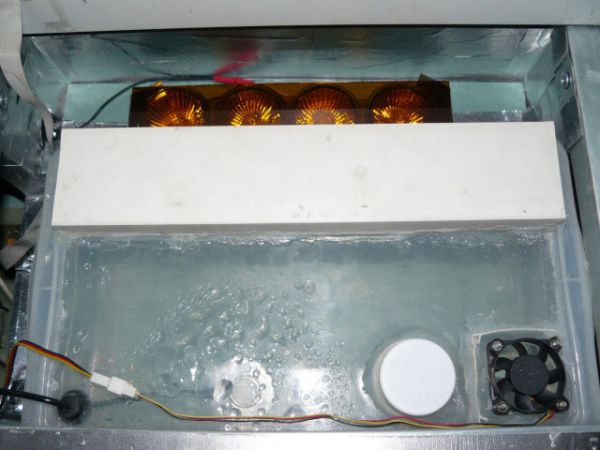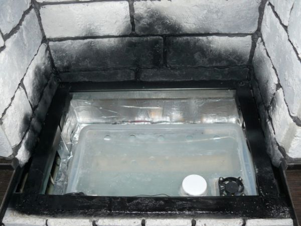 пихаем в каркас и ставим рядом галогенные лампы со светофильтром. Они будут подсвечивать пар и подогревать его, что бы он активно выходил вверх