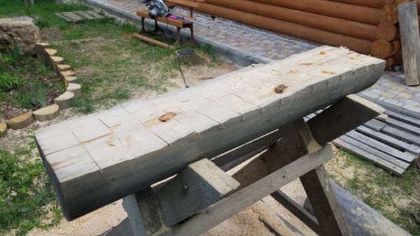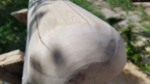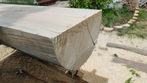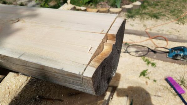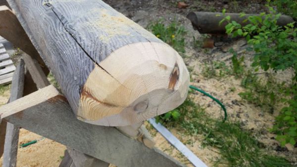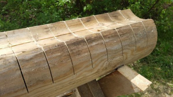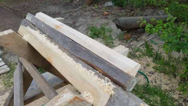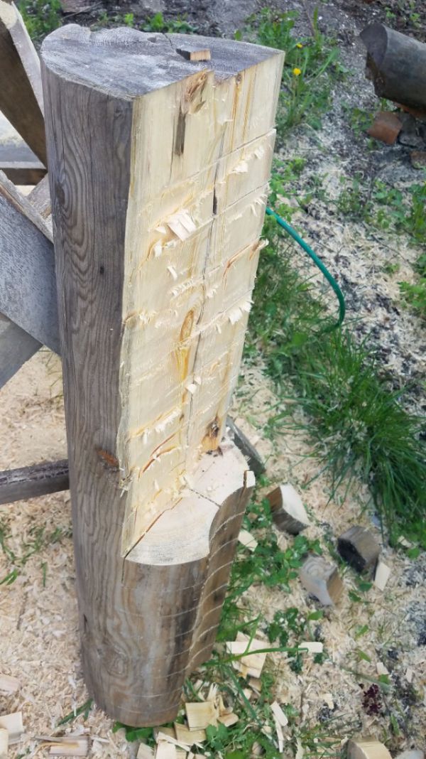 А это я пробовал разваливать бревна. Пилил с 2 сторон циркуляркой и топорами разваливал.