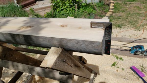 Это из сотки я делал лаги на которых будут сами ступени. Начальные ступеньки решил закруглить...