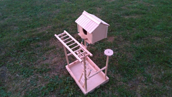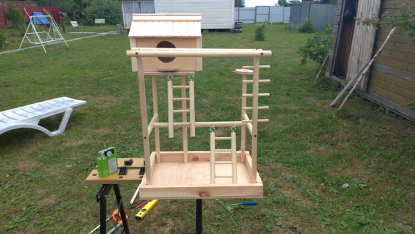 Теперь попугаям есть где играть, и теперь спокойнее стало, что они будут грызть площадку, а не что-то аппетитное в виде мебели.