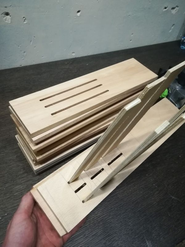 В каждой плашке с помощью ручного фрезера были сделаны отверстия-пазы для ножей.
