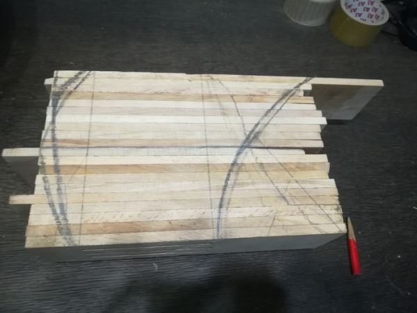 Примерную форму (до-конца не знал какая она будет, потому что не придумал еще) набросал карандашом и пошел выпиливать на ленточной пиле.