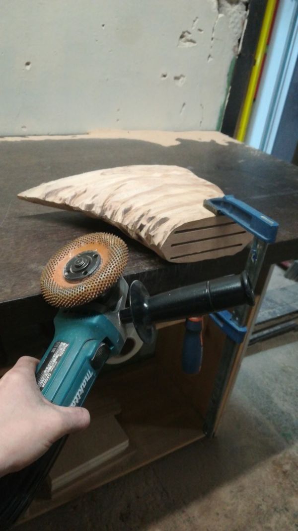 "Болгарка" + злющая шипастая хреновина = опасный и очень крутой инструмент для обработки дерева.