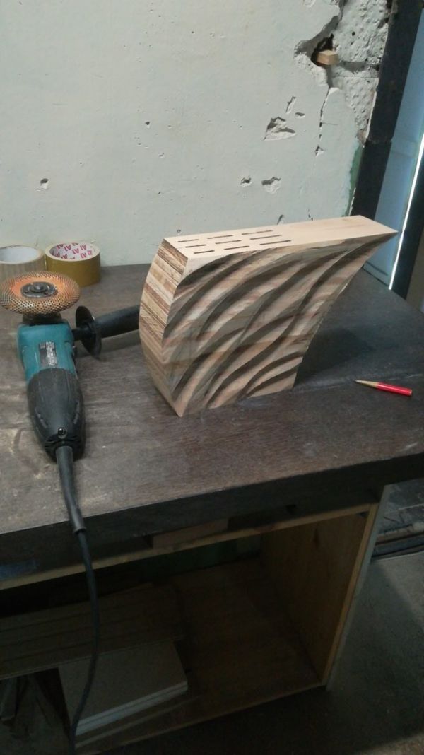 Я тоже решил поделиться как сделана вот эта штука - подставка для ножей из массива бука.