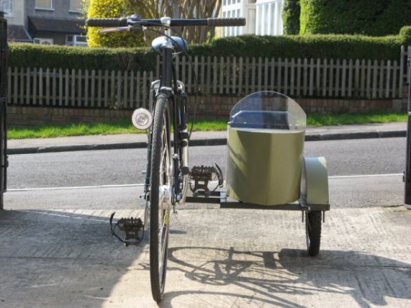 Это не кино "про немцев" и не старый советский велик - это транспортное средство собрано не в промышленных масштабах а на заднем дворе или в гараже. Этот прикольный велосипед с коляской собрал Briton Steve Bodiley своими руками
