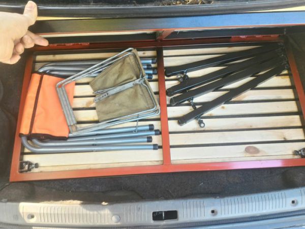 В багажник авто вмещается + внутрь складываются ножки и 3 раскладных стула.