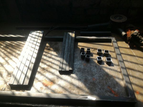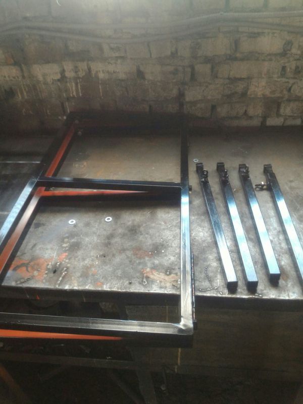 Собрал две рамки, нарезал ножки, решил сделать типа телескопические) да и труба была подходящаяя.