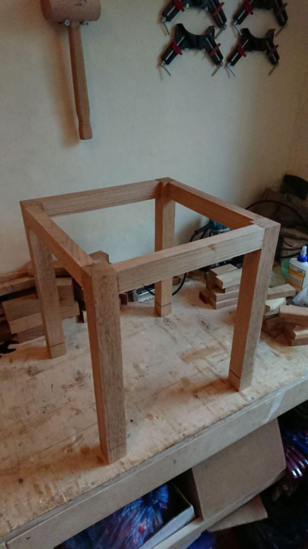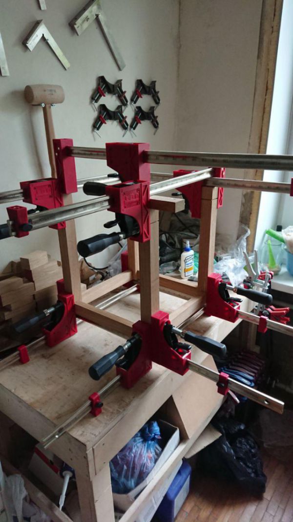 склеиваю царги с ножками, контролируя расстояние между ножками (300мм) и диагональ: