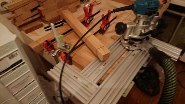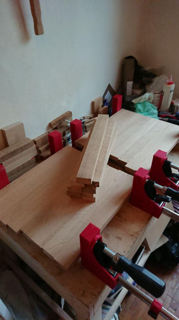 Прифуговываю каждые пару ламелей между собой до идеала и склеиваю щит: