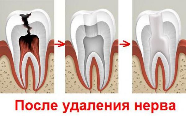 Удаление нерва из зуба — процедура вынужденная. Ни один врач не скажет вам проводить такую операцию без веских причин. Дело не только в потемнении эмали или потере чувствительности — живут такие зубы намного меньше, чем здоровые. Если каналы пролечены как надо, и пломбу ставил профессионал, зуб может продержаться от года до десяти лет. Срок большой, но по его истечению все равно придется повторять процедуру, или, скорее всего, восстанавливать зуб более кардинальными методами — например, коронкой.