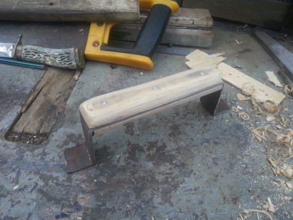 Начал с ручки, срезав кольцо с баллона которое удерживает его в стоячим состоянии.И 2х кусочков фанеры, В общем что было под рукой.