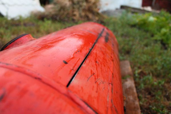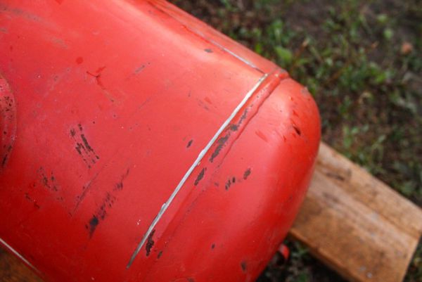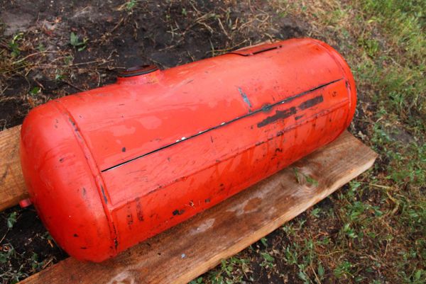 Он очень долго лежал у меня во дворе с выкрученным клапаном, около года. Планы на него в принципе такие и были — мангал) Только вот все руки не доходили. В общем, на протяжении месяца я периодически наливал в него воду, через несколько дней сливал. Просто так. Так было много раз.