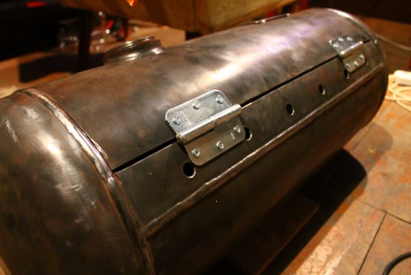 Ну и под конец вечера повесил крышку на петли. Пока что петли просто на винтах, делал это для центровки. Позже, когда дело дойдет до сварки, проварю их и сниму винты, а может и оставлю.