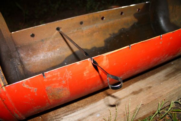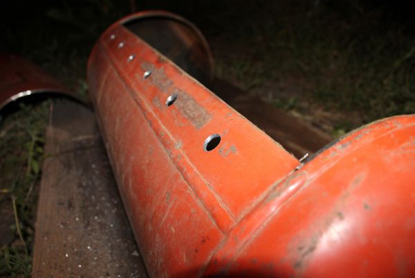 Далее засверлил отверстия на задней "полоске", которая составляет разницу половины баллона. Метал довольно неплохой, ориентировочно 2,5мм. Сверла у меня под рукой были не самые новые, поэтому сначала я сверлил четверкой, а потом уже 12-ым сверлом, периодически его подтачивая)