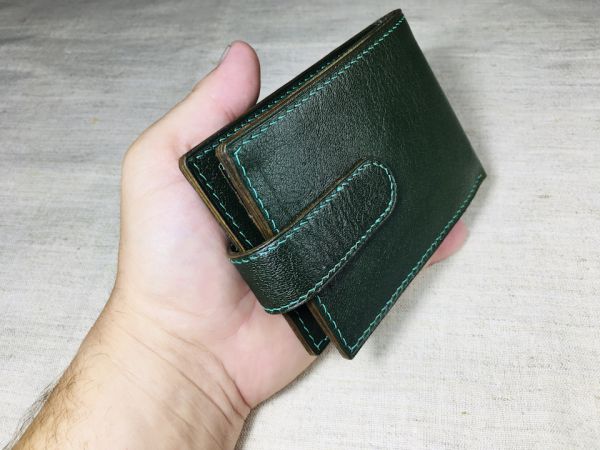 Приветствую. Изготовил для товарища по его просьбе портмоне. Вмещает стс, ву, карты, мелочь и купюры. Просьба было сделать минимальный размер)! Получилось 12.6х 9. Это самый минимум иначе не войдет нужное и не застегнется, ну и кнопку с хлястиком. Кожа козы пр Италия, цвет с градиентом, это когда цвет по всей кожи с переливом светлей и темней. Изделие получается с мягким контрастом деталей( очень оригинально и красиво) Процесс занял около 20 часов. Всем отличного настроения и приятного просмотра.