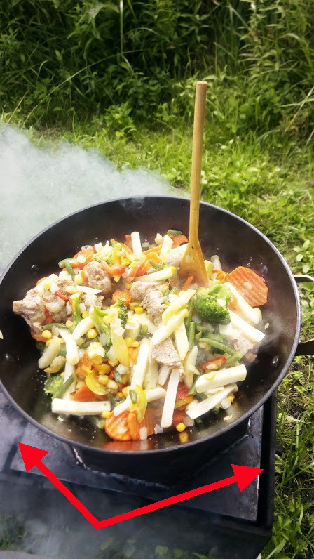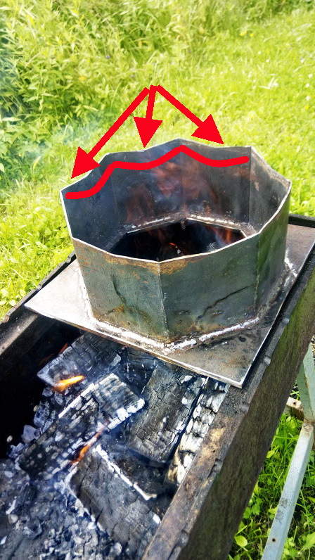 При испытании выяснилось, что интенсивность горения можно регулировать зазорами между крышкой, подставкой и мангалом.