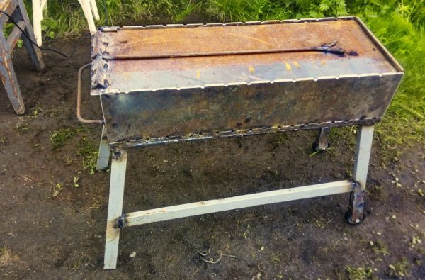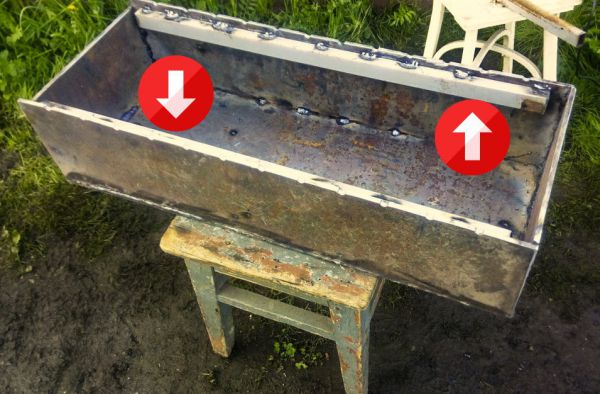 Основным отличием от простого мангала, являются внутренние полозья. Делал из расчета под постановку коптильни и сдвижной крышки.