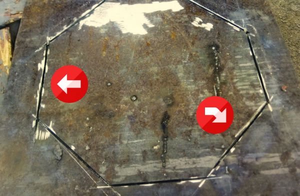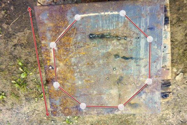 Подказанница (или как там правильно говорят) — вот что еще нужно! Напомню, железо только 6 и 2 мм. Двойку, как бы я не пытался в трубу не согнуть руками. Поэтому, решил делать в форме восьмиугольника.