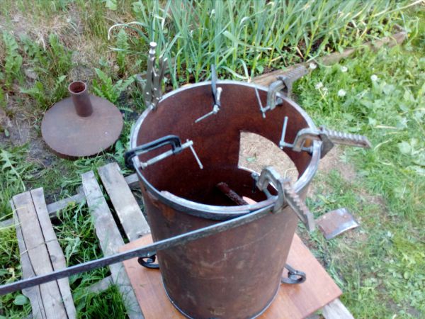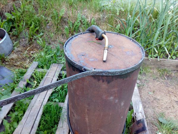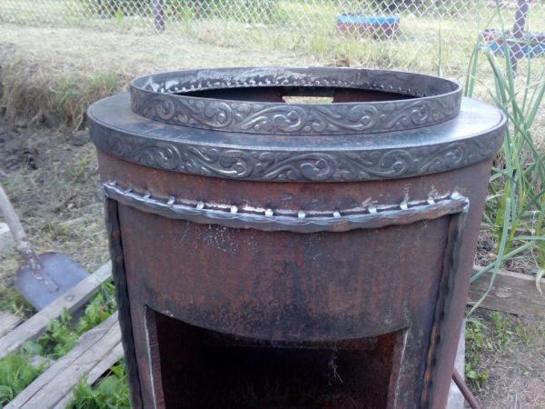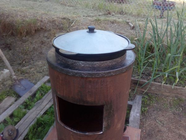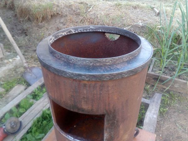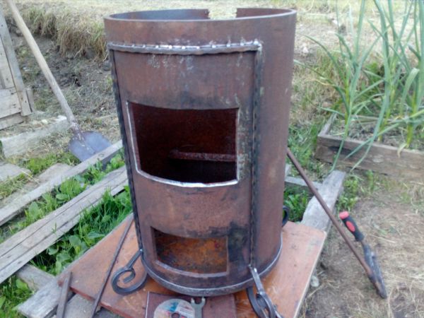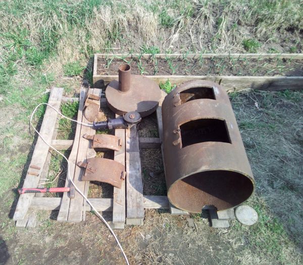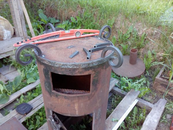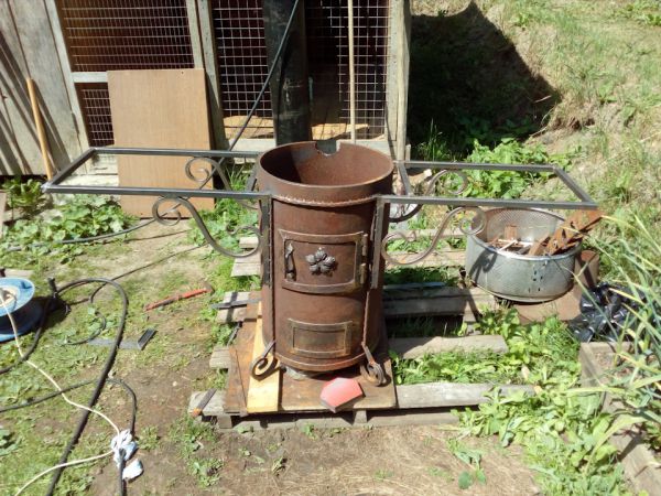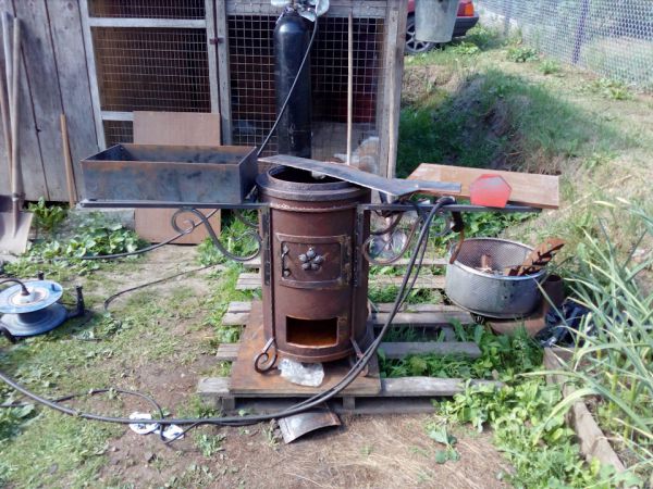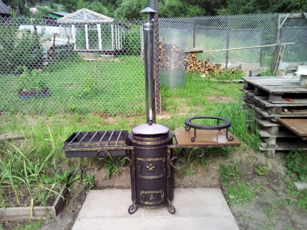 Досталась буржуйка из газовой трубы, вот нашел применение, окультурить и получился комплекс барбекю для проведения выходных.