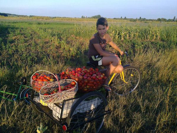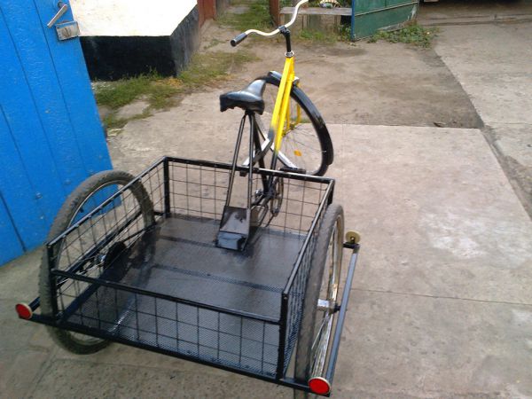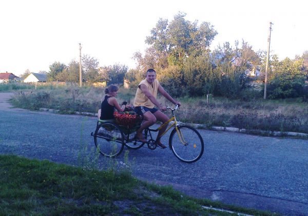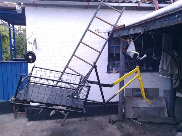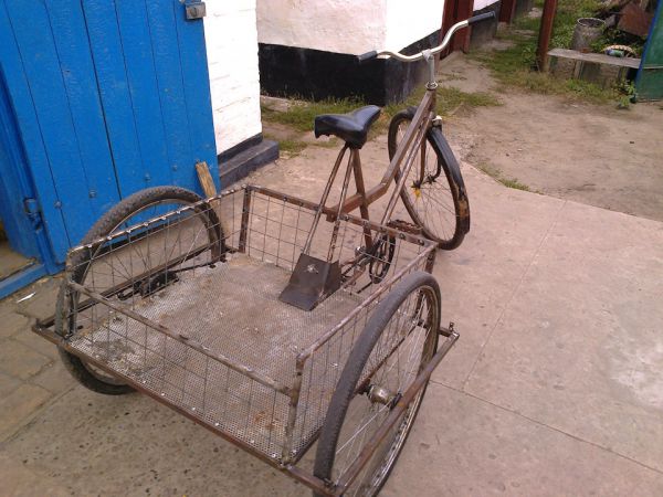 Было решено сделать тёще велосипед из найденного в дворе тещи вело хлама. 8 дней после работы и получился такой вот аппарат для села, транспортировка огорода, пришёлся вместо привычного возка. Роздатку по звёздочкам — примерно угадал, кому надо могу посчитать, ехать очень легко даже с 4 мешками картошки.