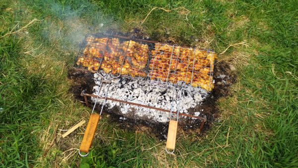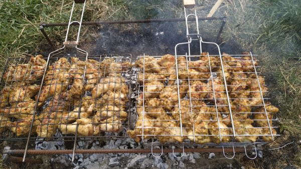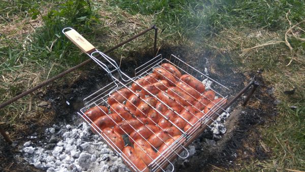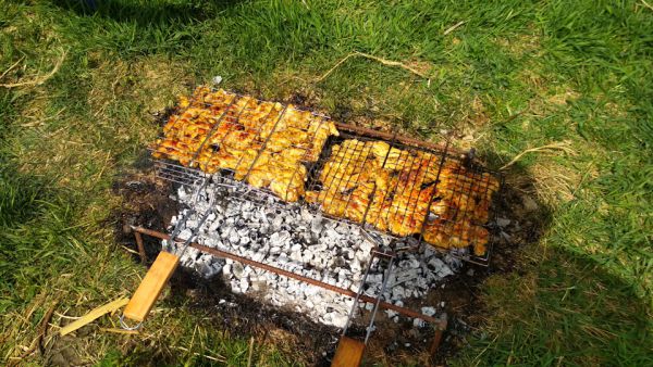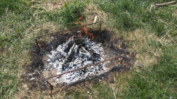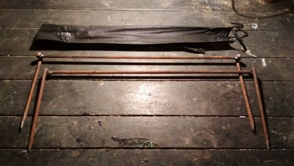 Сделал с 10 мм арматуры портативную раскладную подножку для шампуров и барбикю (отдых, охота, рыбалка). Занимает мало места, влезли в чехол для удочек, удобно (постоянно) транспортировать в автомобиле, при нагреве от огня метал не крутит в разные стороны.