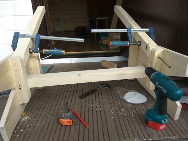 Фото сделано в момент работы по второй лавке, потому что первая шла путем проб и ошибок, каждую детальку работал по отдельности.