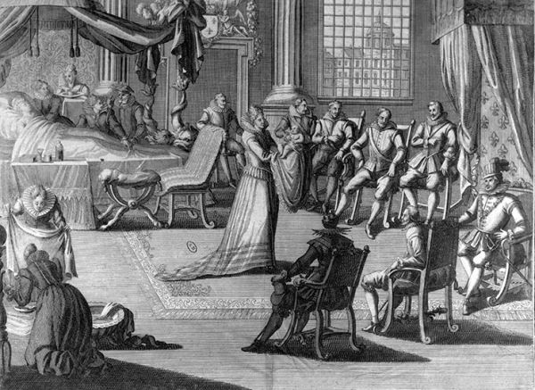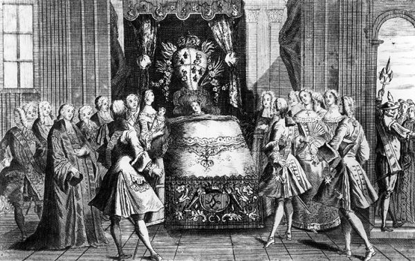 Вплоть до середины XVII века королевские роды были делом исключительно женским — любые знания передавались от одной женщины к другой. Королеве помогали повитухи, другие беременные женщины или женщины постарше, у которых уже были дети. Мужчин в это царство не допускали. Повитухи должны быть не только опытными, но и иметь хороший, легкий характер. Перед тем как войти к роженице, они давали клятву, что не возьмут от ребенка ничего — ни плаценты, ни пуповины, которые могли использоваться для колдовства.