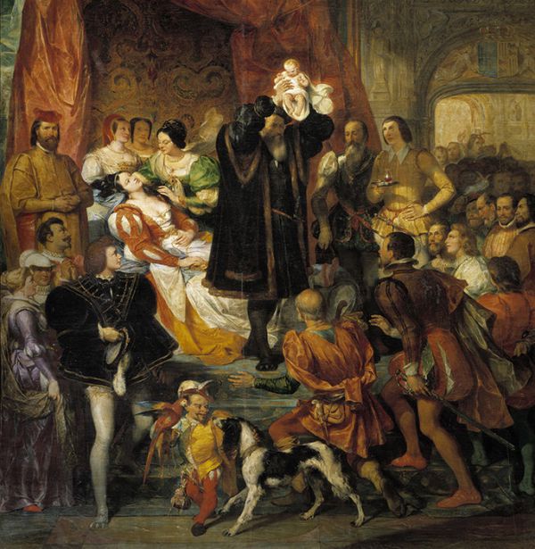 Новость о королевской беременности вызывала жадное любопытство и возбуждение. Но и опасение, само собой, потому что роды тогда были опасным мероприятием, во время которого королева могла умереть. В XVI веке в Британии появлению на свет младенца предшествовала длинная религиозная церемония: месса, вслед за которой шла настоящая процессия, когда королеву доставляли в место, где ей предстояло провести последние недели в ожидании родов. Процессия не являлась закрытым событием — полюбоваться на нее являлись и стар, и млад. Телевизоров не было, надо было как-то развлекаться.