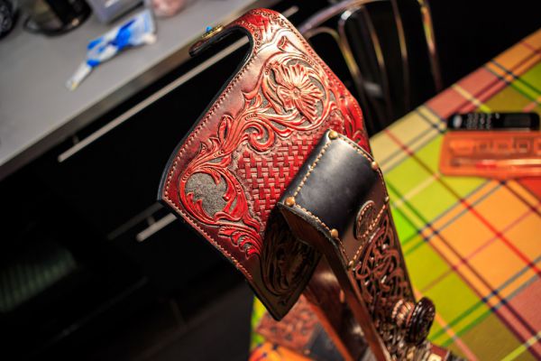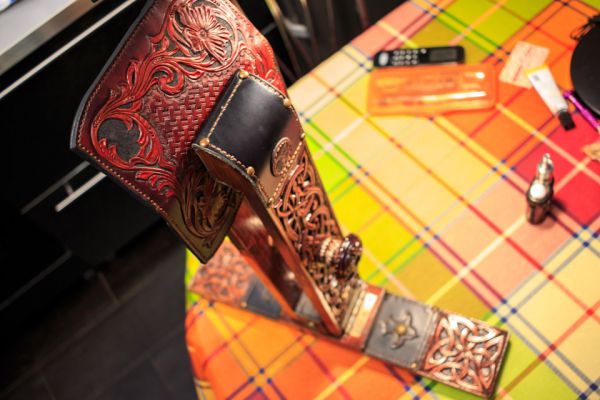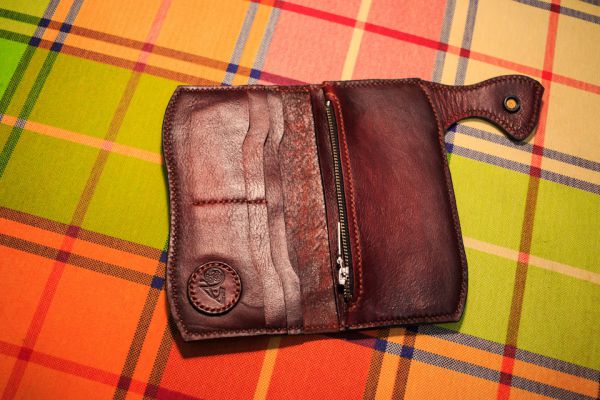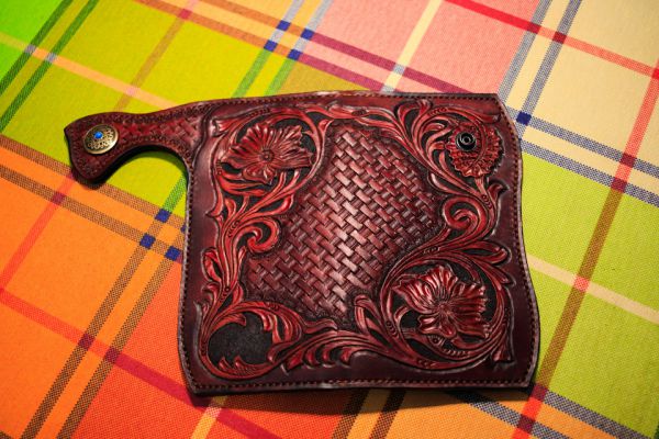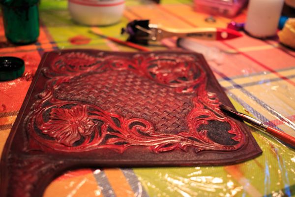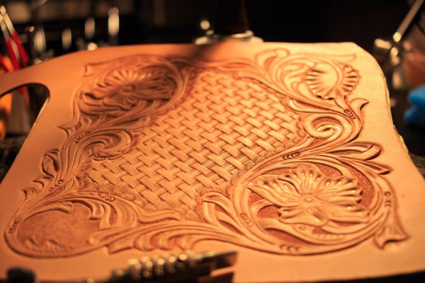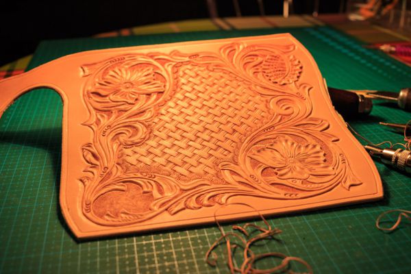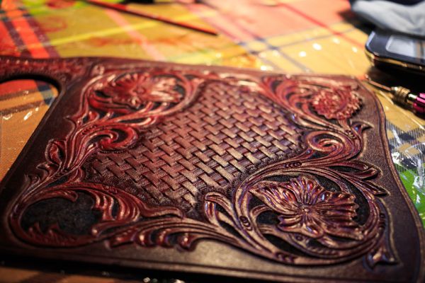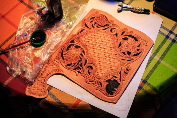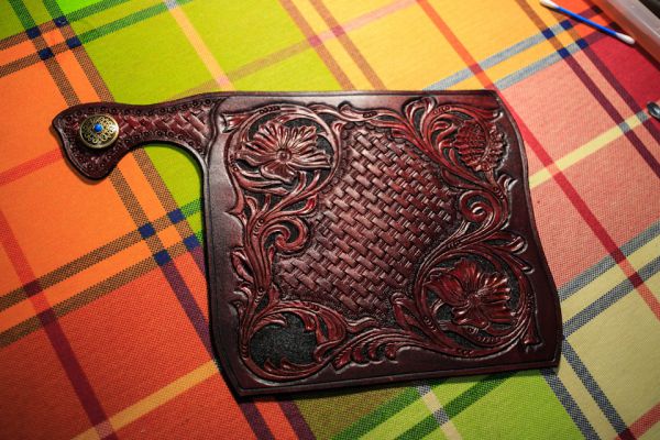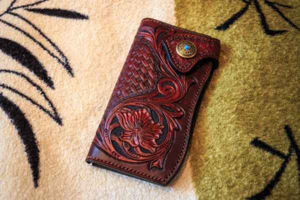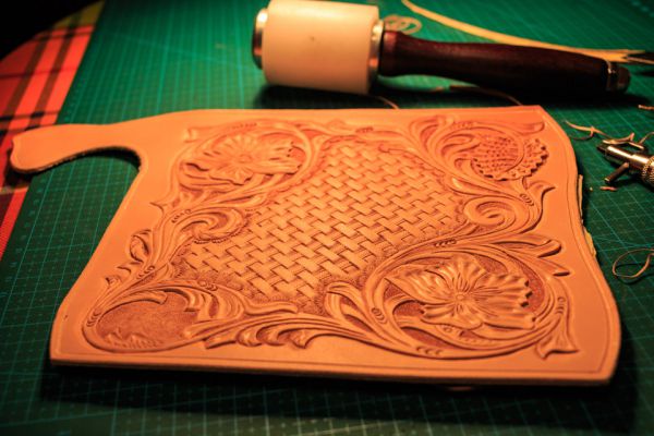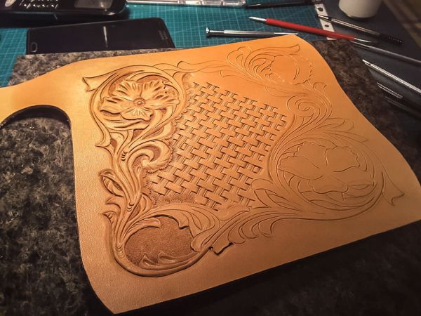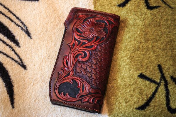 Давно вынашивал идею и вот наконец воплотил в жизнь освоение нового для меня вида работы с кожей, это тиснение. Сразу приглянулся стиль шеридан, это в основном растительный орнамент, который выполняется на сырой коже растительного дубления специальным ножом и штампами. Тиснение далось мне не так, что бы трудно, думаю в этом помог опыт резьбы по дереву, но процесс существенно отличается от всех видов творчества с которыми я сталкивался и что бы добиться серьёзных результатов нужно ещё ох как много практиковаться. И вот в качестве моей первой работы сделал любимой супруге портмоне, которое и представляю на ваш суд.
