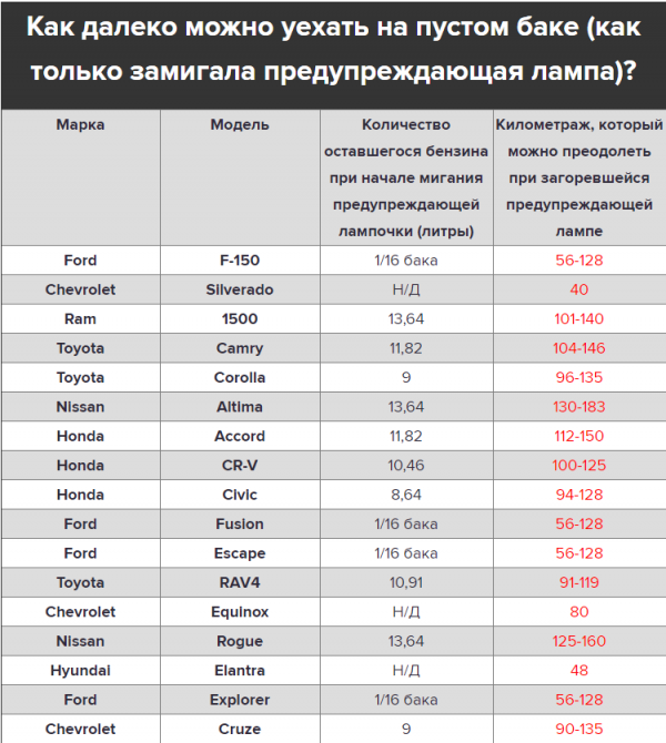 А сколько можно проехать на автомобиле, когда уже загорелась лампочка?