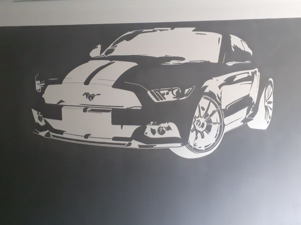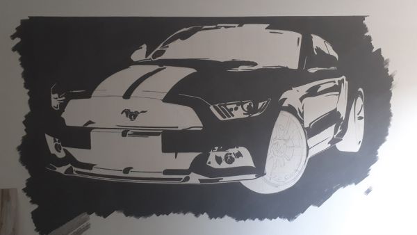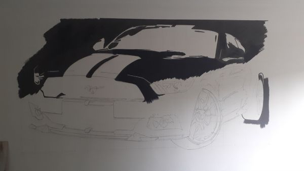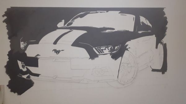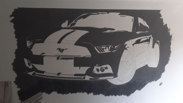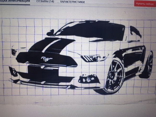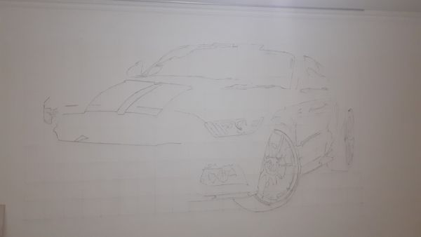 Всем привет! Хотел сыну в спальне нарисовать рисунок автомобиля на стене, сначала пробывал сделать проекцию с телефона при помощи коробки и лупы, но размер на стене был слишком маленький, возможно если была бы лупа более выпуклой возможно и получилось бы, но такой не нашлось и было решено рисовать с помощью сетки разметив рисунок и по масштабу стену. Клетка получилась на рисунке 1см а на стене 12.5 см.