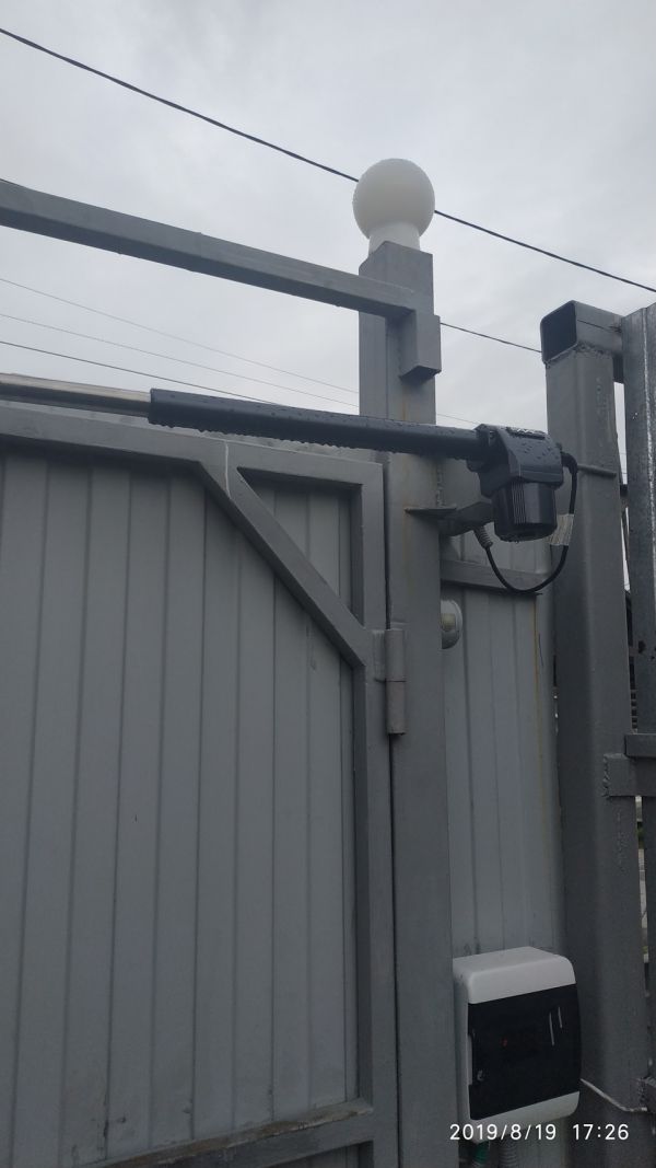 Привода хотел делать посередине створок, но из-за длины рабочего штока пришлось поднимать выше калитки