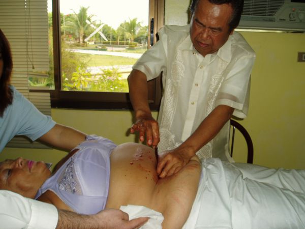 Профессор уверял, что филиппинские хилеры могут осуществлять хирургические операции голыми руками без гипноза, без анестезии, без боли и занесения инфекции.
