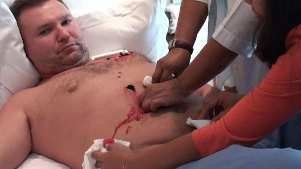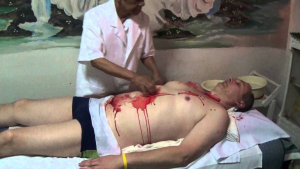 Долгого мытья рук тоже не было, хилер просто сполоснул руки в банке с белой жидкостью. И так после каждой операции — окунал руки в банку и вытирал одним и тем же полотенцем.