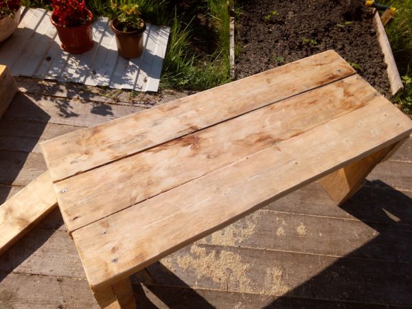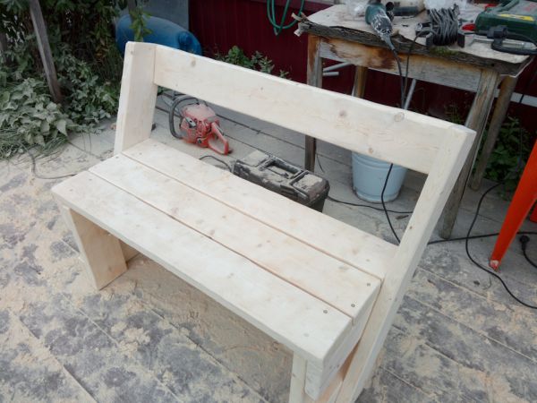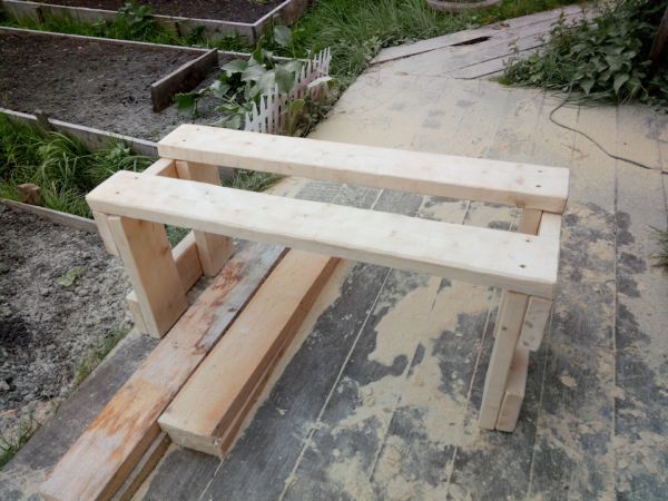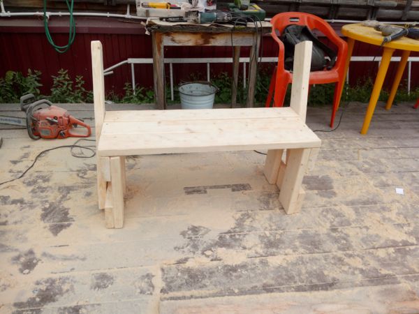Ну и завершает картину установка ещё одной метровой доски в качестве спинки. По эскизу планировал установку двух досок, но испытания показали достаточность одной.