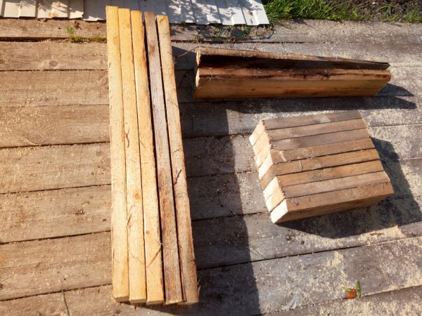 Метнулся я на дачу прямо после работы, по дороге заехав в магаз за саморезами, при этом по ходу дела раздумывая над конструкцией. Пытался ещё заранее гуглить — нет, всё слишком сложно для меня. Решил, что буду импровизировать. С материалом всё понятно: не первый год уже на участке лежит остаток штабеля 40ой доски. Лежит, гниёт.