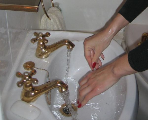 Если люди во всем мире привыкли зачерпывать руками воду прямо из-под крана и умывать ею лицо, то англичане сначала наполняют раковину, словно тазик, и затем черпают воду из нее руками, чтобы умыться, или моют в ней руки. Два крана для наполнения раковины водой нужной температуры – это вполне удобно. Споласкивание рук – не в привычках англичан, после мытья в раковине они сразу же просушиваются полотенцем. Пробка из раковины достается, вода спускается.
