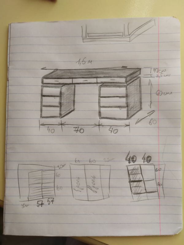 Всем доброго дня друзья! Хочу поделится с вами своим творением)) Был красивый августовский день, ничего не предвещало беду, подходит жена с сыном и ставят задачу нужен стол))) Ну как откажешь, темболее их трое а я один))) Пришлось браться за это дело. Началось все с листочка бумаги и карандаша, размеры точно уже не помню, листочек приложил так чисто контент)) Если кого то интересует замер снимем быстро)) Конечно же несколько фоток на оценку, пока еще без ручек, процесс как всегда забыл запечатлеть((