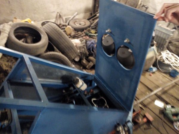 Имеется багажное отделение 80 на 70 см, высота переднгего борта 40 см-заднего 20 см.Обшита алюминием 1.2 мм, листовым железом 0.4 мм и фанерой 6мм-там где нет нагрузки и 10 мм где она есть(пол, и багажник со всех сторон кроме его крышки.Крепёж-заклёпка 4мм(ушло около 300 шт)